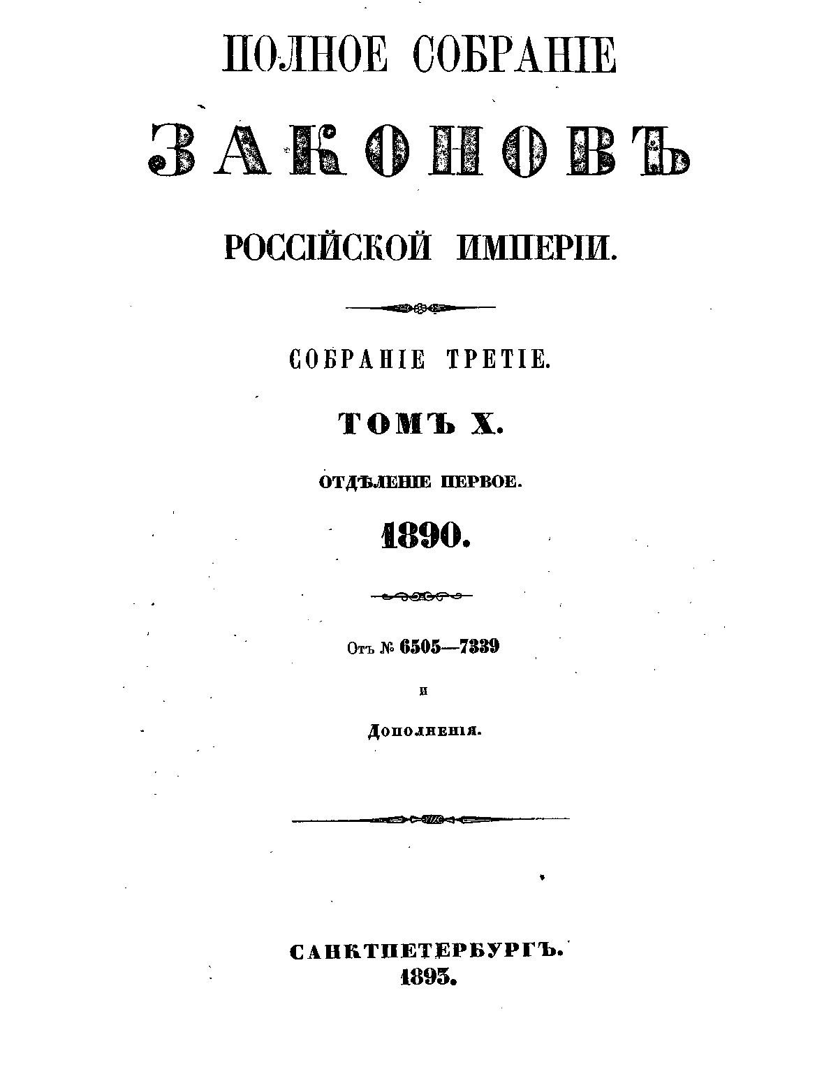 Полное собрание законов Российской Империи. Собрание Третье. Том X. Отделение 1